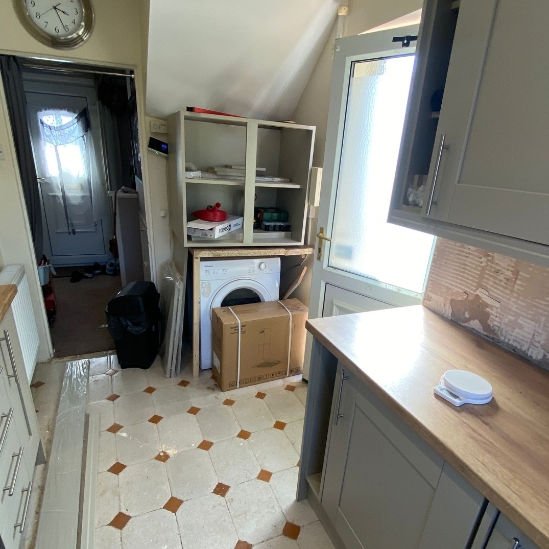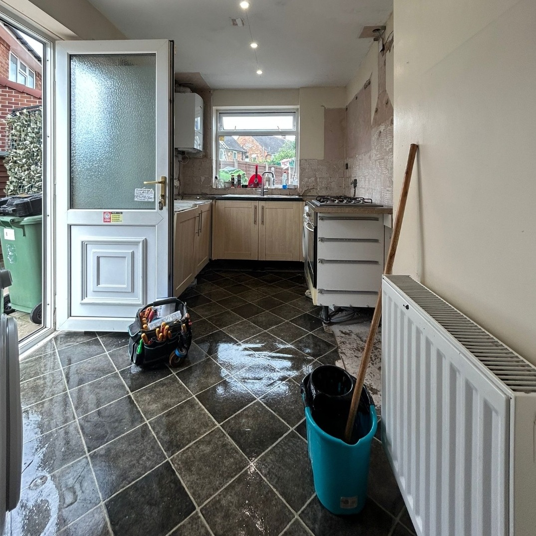 Structural preparation included reworking service routes, updating electrics, and ensuring the room was properly sealed and refinished before installation began. This allowed the new kitchen to be installed with confidence, free from the issues caused by the previous damage.
